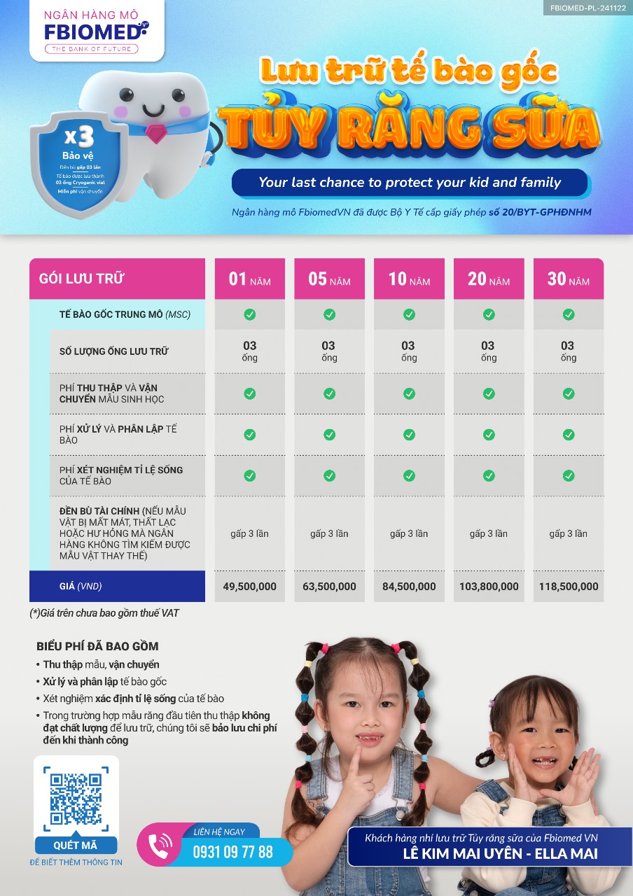 CHI PHÍ LƯU TRỮ TẾ BÀO GỐC TUỶ RĂNG SỮA